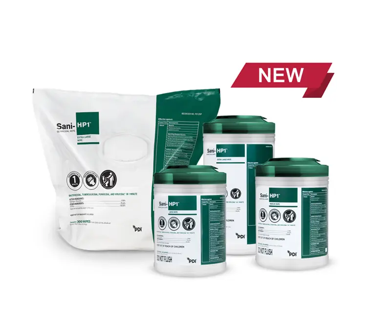 Sani-HP1’s packaging is designed to reduce plastic use and minimize overall waste, reflecting PDI’s commitment to sustainability. Available in multiple formats, it’s tailored to meet the unique needs of your facility while supporting environmentally responsible infection prevention.