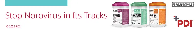 Combat Norovirus outbreaks with trusted solutions designed to break the chain of transmission in healthcare settings. PDI’s Sani-HyPerCide®, Sani-Cloth® Prime and Sani-Cloth® Bleach Wipes are all effective against Norovirus.